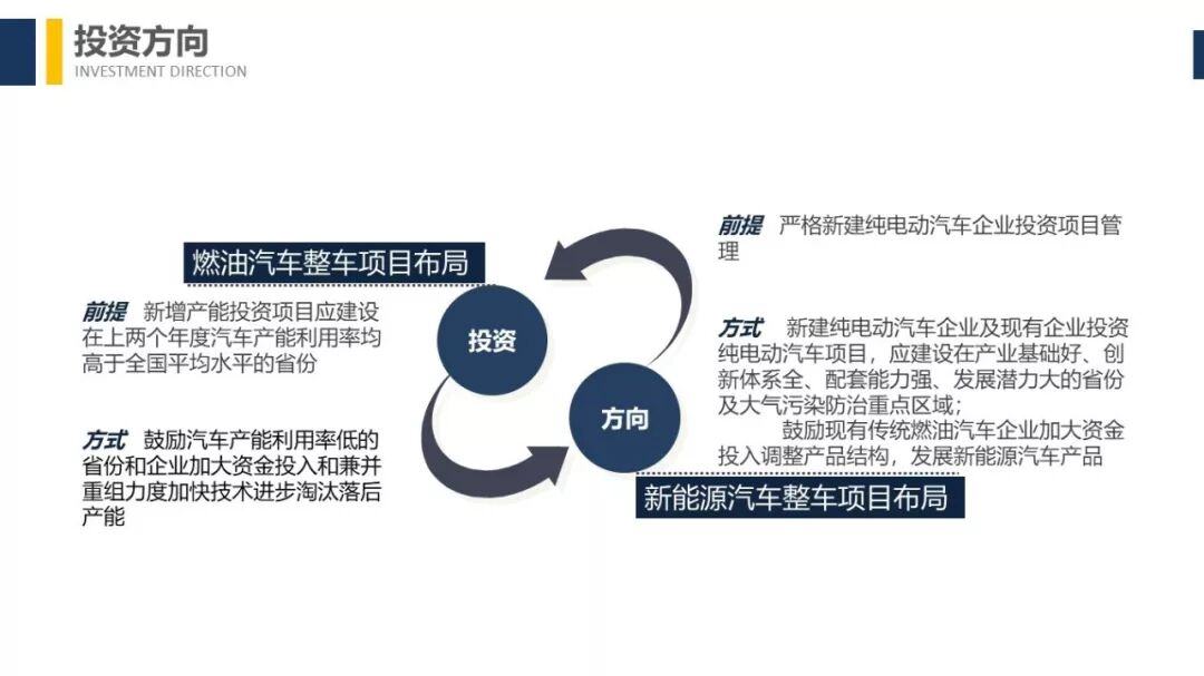 总体来看,规定致力于优化燃油汽车整车项目布局,推动产能向产业基础扎实、配套体系完善、竞争优势明显的省份聚集。鼓励汽车产能利用率低的省份和企业加大资金投入和兼并重组力度加快技术进步淘汰落后产能,增强市场竞争力。