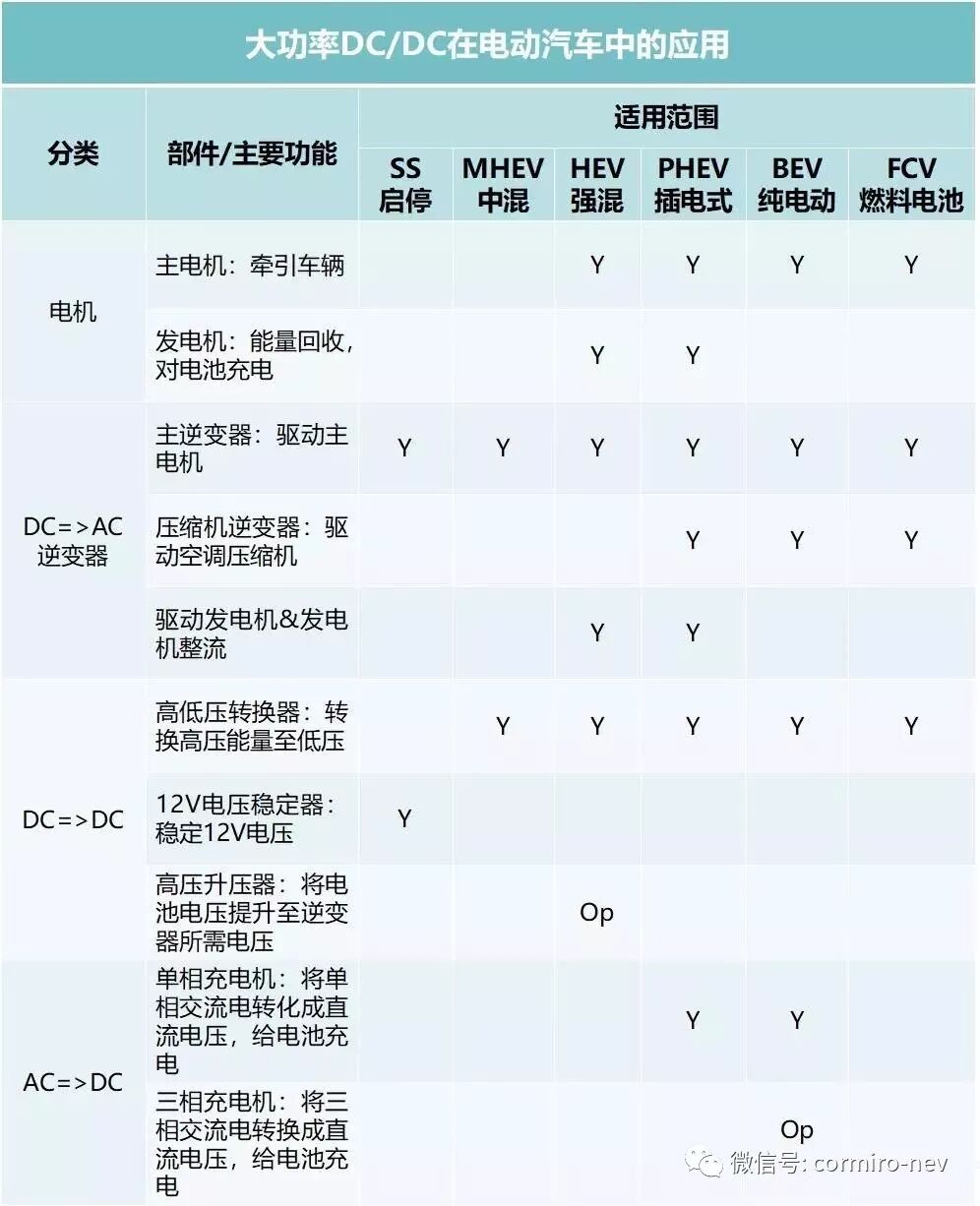 大功率的DC/DC在汽车电气化系统里面起到了一个关键的作用,但也与逆变器这种和车辆安全有着直接关联的设备有着本质的区别,如下表中不同产品的附加值,与是否涉及核心的车辆安全有直接的关系,更会影响到整车企业是否想把部件做成in-house的部件。汽车上所涉及的DC/DC主要有三种类型。