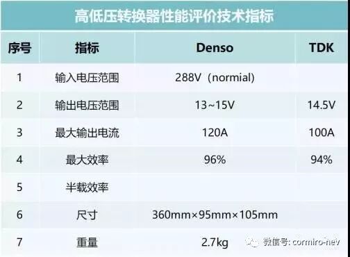 DC/DC的部件主要有以下的技术指标,如下表所示(以Denso及TDK为例):