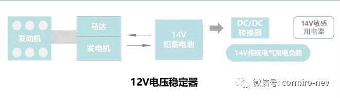 如下图所示,12V电压稳定器主要是用在部分Start-Stop系统(如果有可能,后续对Start-Stop将要做个分类,目前在欧洲SS系统已经应用非常广泛了。在启动过程中,如果采用某种架构用来防止电压波动对一些敏感器件产生影响。这里的敏感负载,主要包括用户可见的用电负载,如内饰灯和收音机等。电压稳压器的功率等级,随着敏感用电器的负荷而定,一般为200~400W;总体而言,此类器件功率等级较小,成本要求较为苛刻,欧洲的零部件厂家切入较早,这类器件的技术已经非常成熟。